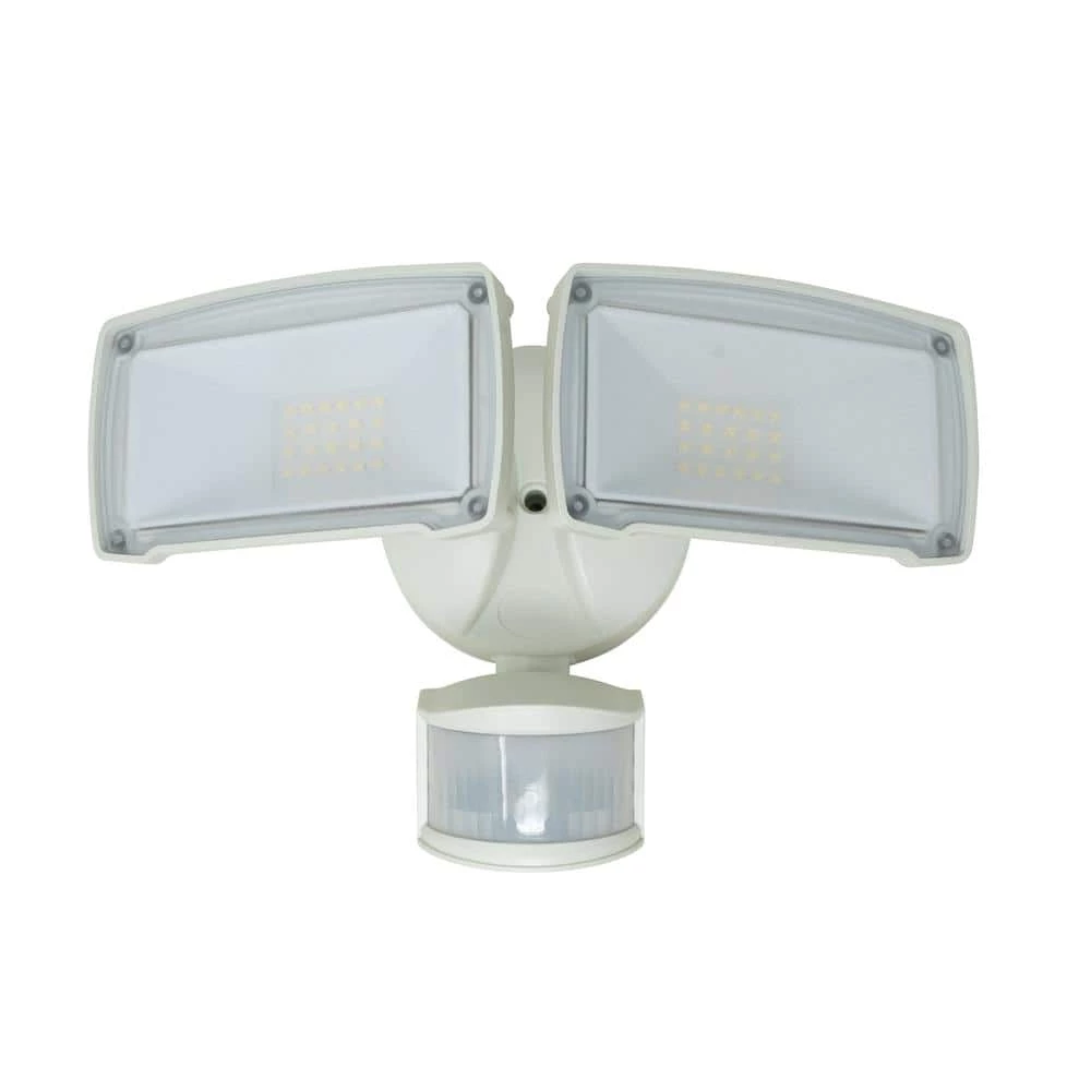 Enjoy the safety of the 32W Motion Activated White LED Security Light featuring a 2-head light with a 180-degree motion detector and a range that reaches up to 45 feet. This security light is quickly triggered by humans, animals, cars, or other moving objects and works efficiently in a variety of locations such as garages, backyards, porches, and driveways. Timer can be set to keep the light on up to 1, 5, or 10-minute periods after the last trace of movement has been detected. Provides 3,200 lumens of light at a 6,000k color temperature for ideal lighting.