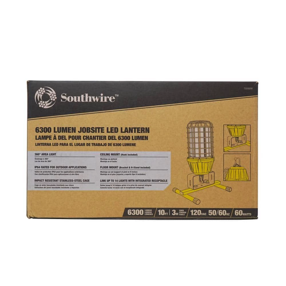 The Southwire 6,300 Lumens Jobsite LED Lantern is a 360° area light perfect for any job site or work space. This lantern is IP64 rated for outdoor applications and comes with an impact resistant stainless steel cage. The integrated hook for hanging and included floor stand make this lantern versatile on any job site. A Floor Stand is included.