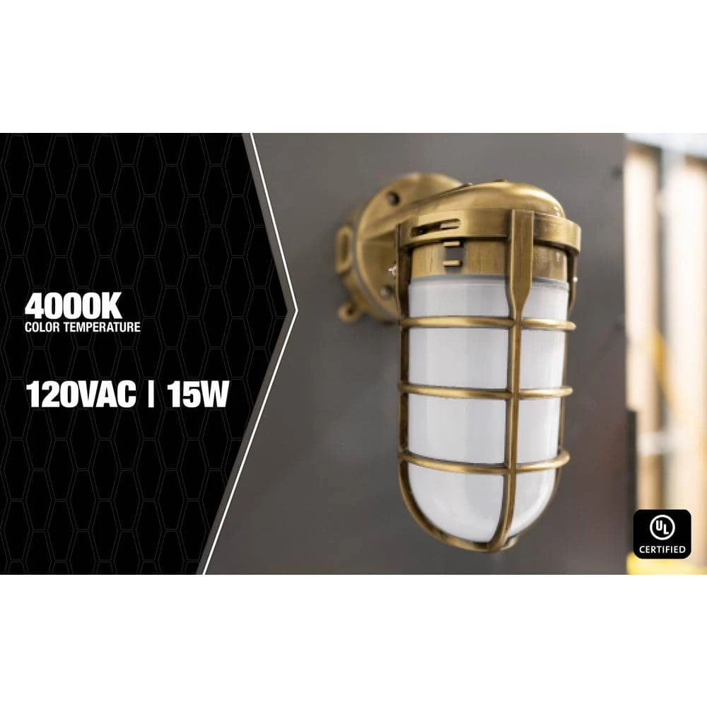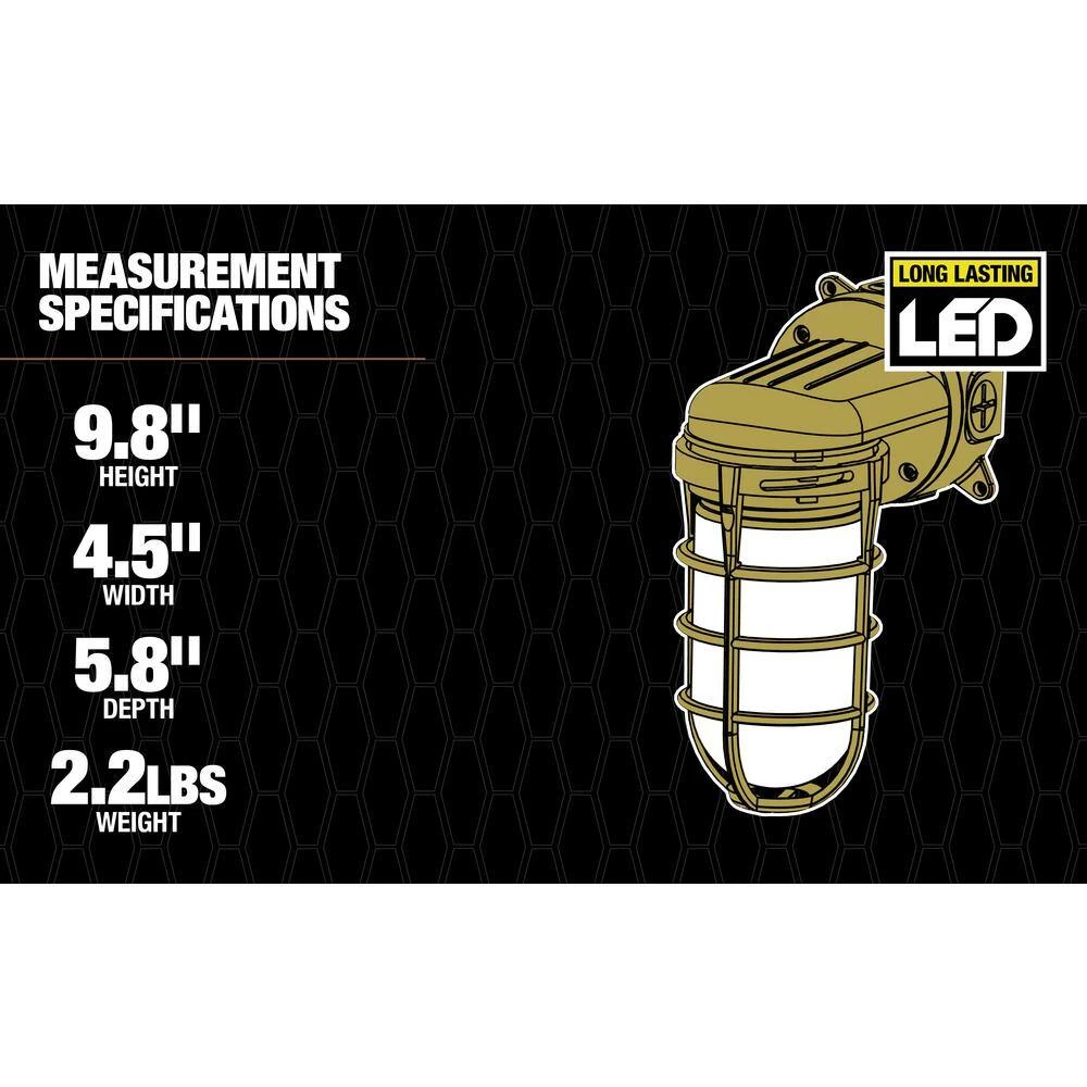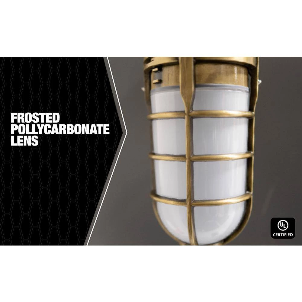 Add an edgy style to your lighting with the LED Vapor Tight Wall Mount Light with an antique bronze finish. Though often considered as an outdoor light, it works well for an indoor industrial look as well. Its sleek finish and tough tempered glass along with the metal protective frame bring an elegant and rustic feel to a wide range of spaces including kitchens, dining rooms, bathrooms, entrances, porches and more. Constructed to withstand rain, storms and Sunshine alike-never worry about its durability when unexpected weather arises. Light up your space with this beautiful wall-mounted light featuring the brightness of 853 Lumens.