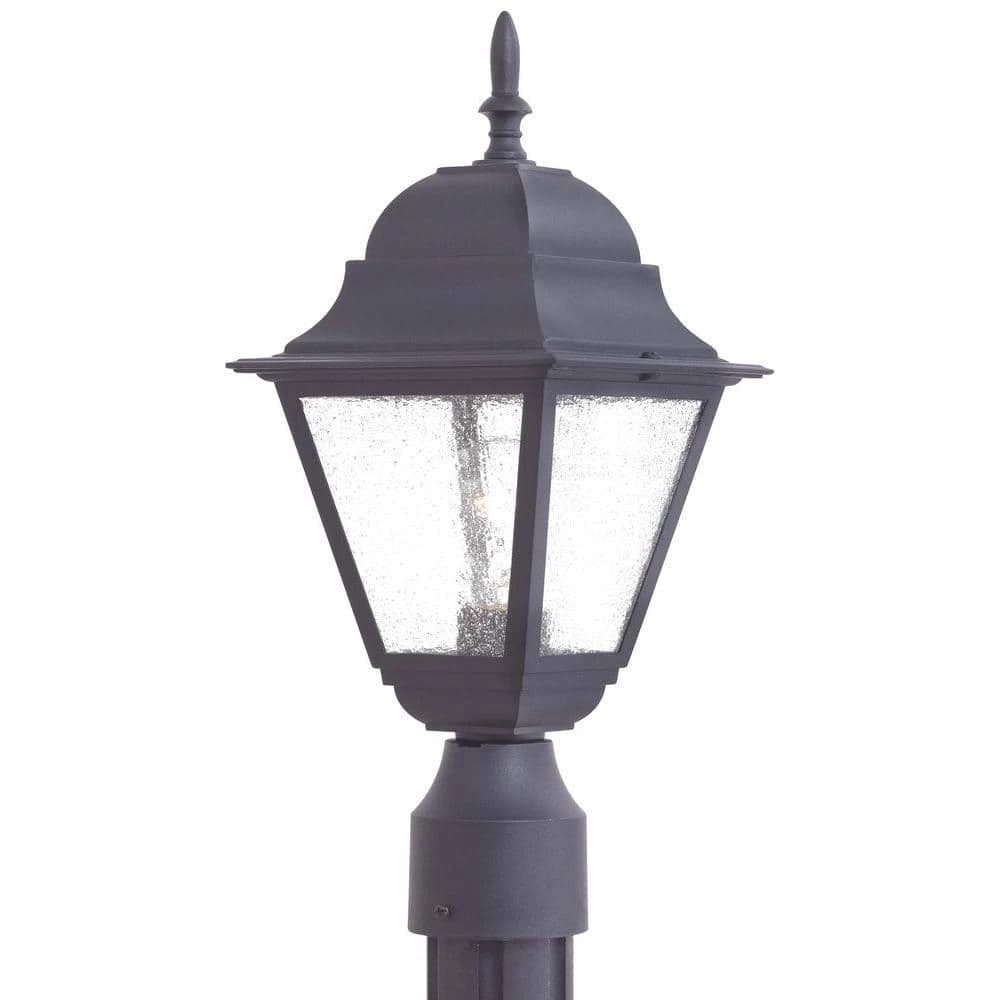 Style and long lasting beauty are offered by the great outdoors by Minka Lavery Post-Mount 1-Light Outdoor Lantern. A cast aluminum housing finished in black pairs well with the clear seeded glass panels. Enjoy this classic fixture in any outdoor location where you need illumination.