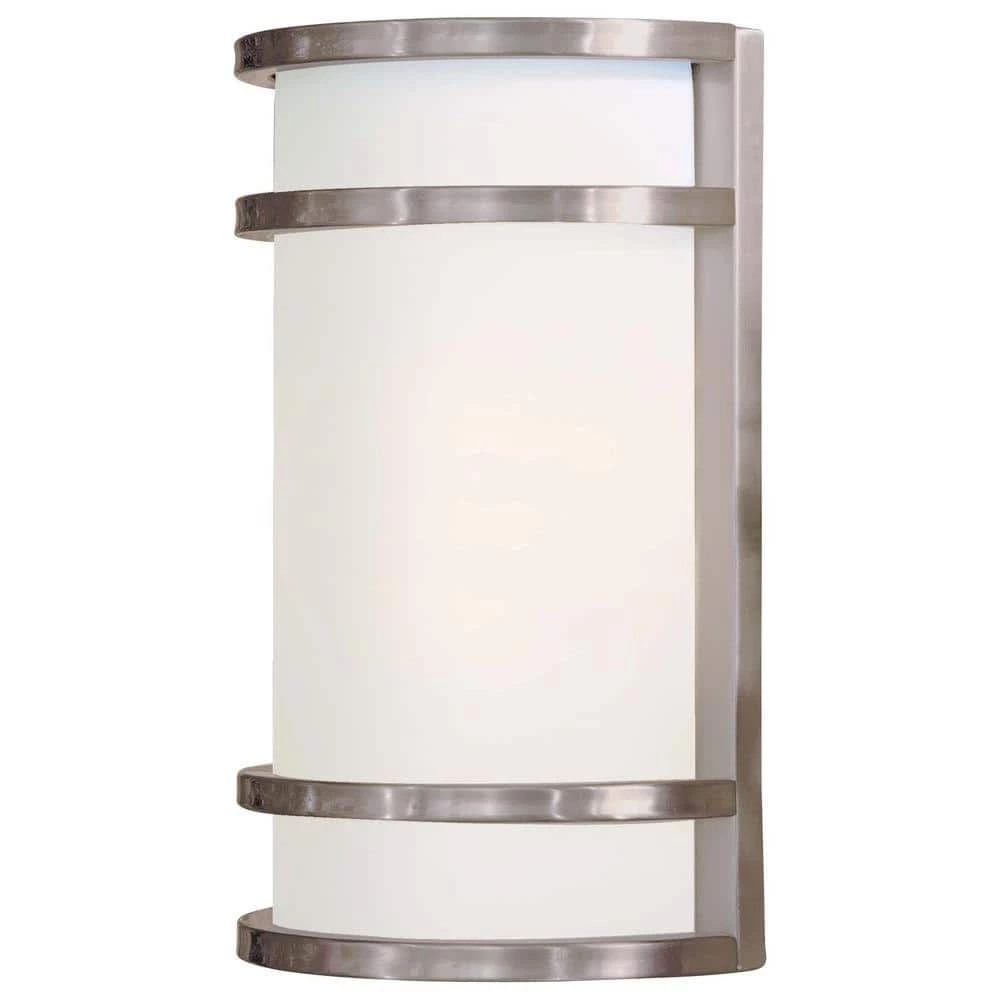 The best description of the great outdoors by Minka Lavery Wall-Mount 2-Light Outdoor Lantern is clean and contemporary. The brushed stainless steel finish complements the etched opal glass shade. This wall-mount fixture will give your outdoor space a fresh look.