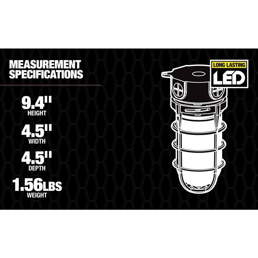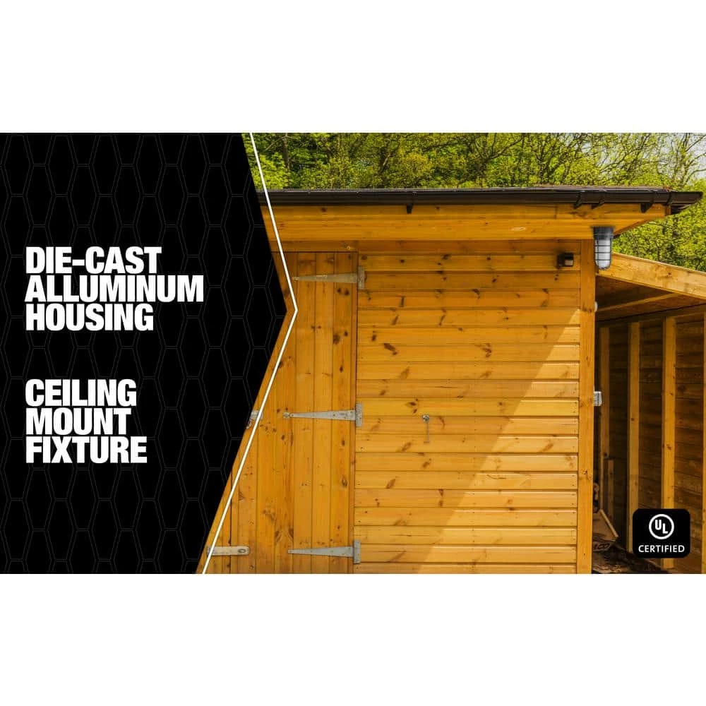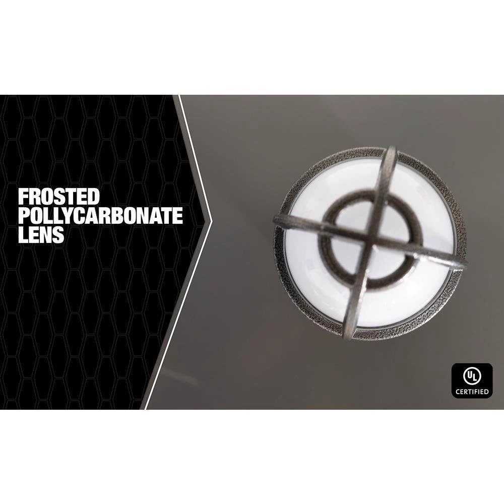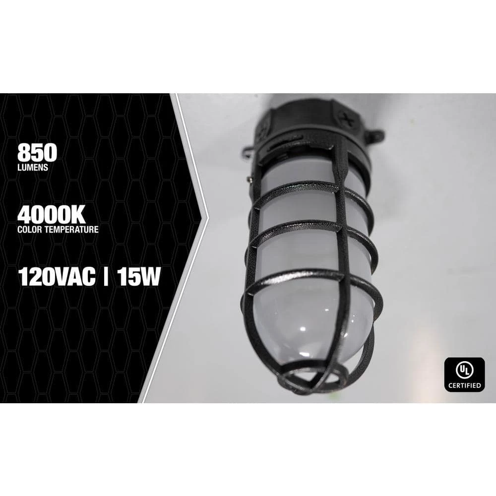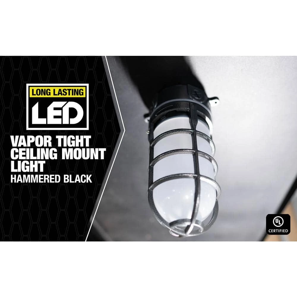 Add an edgy style to your lighting with the LED Vapor Tight Ceiling Mount Light with a hammered black finish. Though often considered as an outdoor light, it works well for an indoor industrial look as well. Its sleek finish and tough tempered glass along with the metal protective frame bring an elegant and rustic feel to a wide range of spaces including kitchens, dining rooms, bathrooms, entrances, porches and more. Constructed to withstand rain, storms and sunshine alike-never worry about its durability when unexpected weather arises. Light up your space with this beautiful ceiling-mounted light featuring the brightness of 851 Lumens.