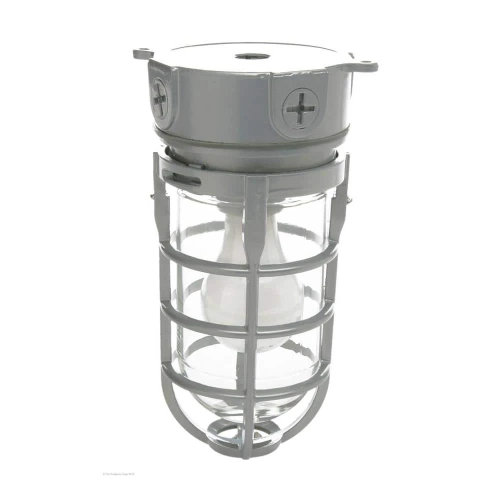 The 100-Watt Ceiling Mount Incandescent Weather Tight Industrial Light has all metal construction and a tempered glass lens. It can use up to 100-Watt incandescent bulb (not included). Limited 2 year warranty and is UL and CUL listed.