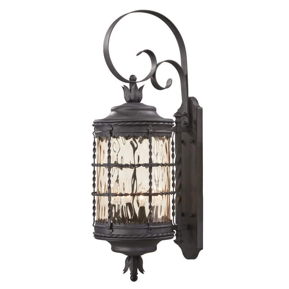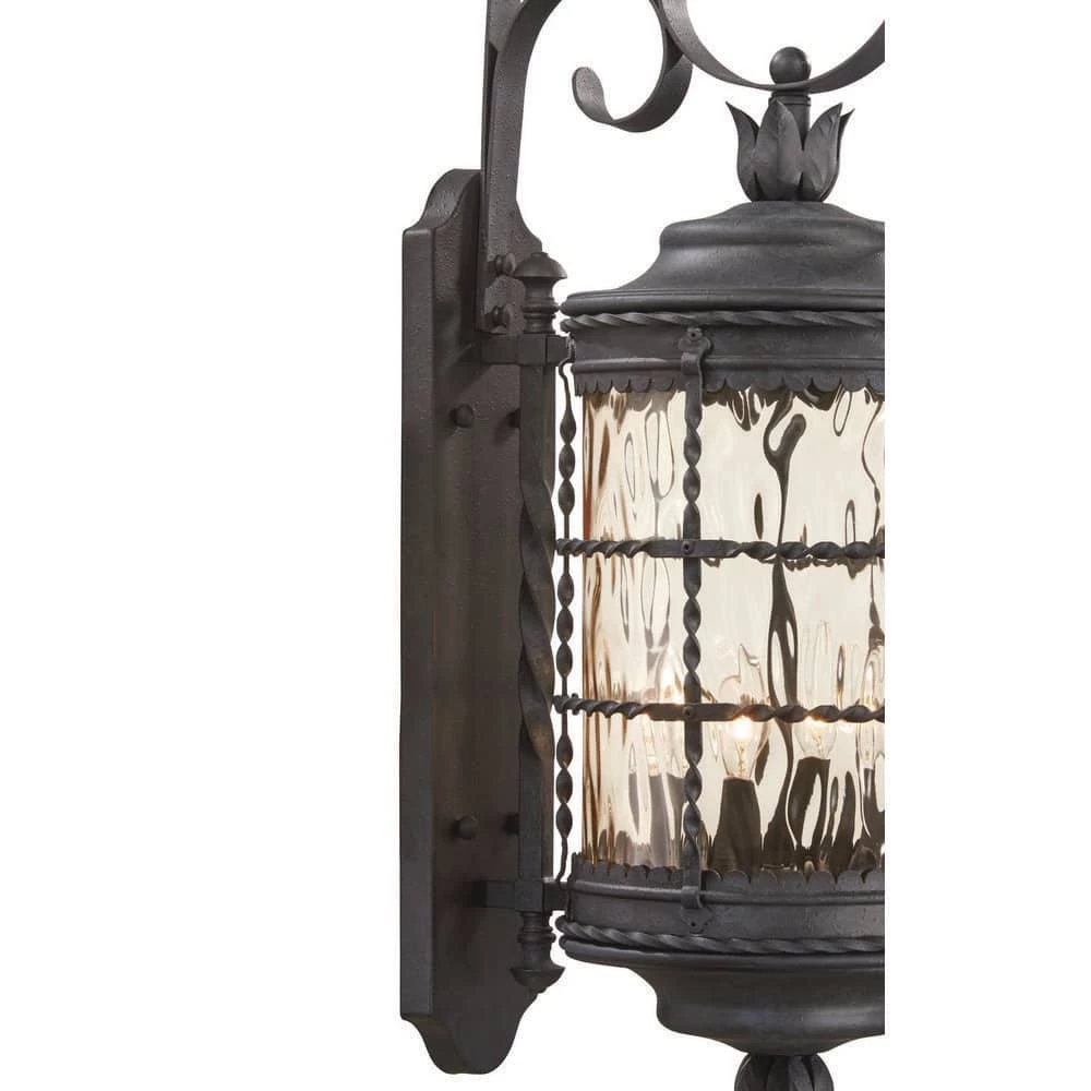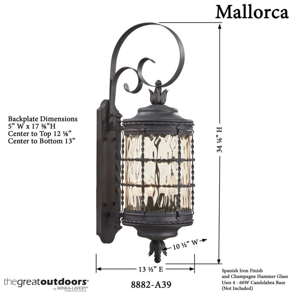 Mallorca collection by The Great Outdoors lighting piece is a well crafted series that will add to the ambiance of any home. It has twisted wrought iron detailing in Spanish Iron finish and elegant champagne hammered glass. The Mallorca collection’s modern silhouette is enhanced by CFL, Candelabra, and Medium Base Bulbs grazing down the delicate pattern. Complete your outdoor presentation with a versatile array of coordinating fixtures in this series for stunning outdoor appeal.