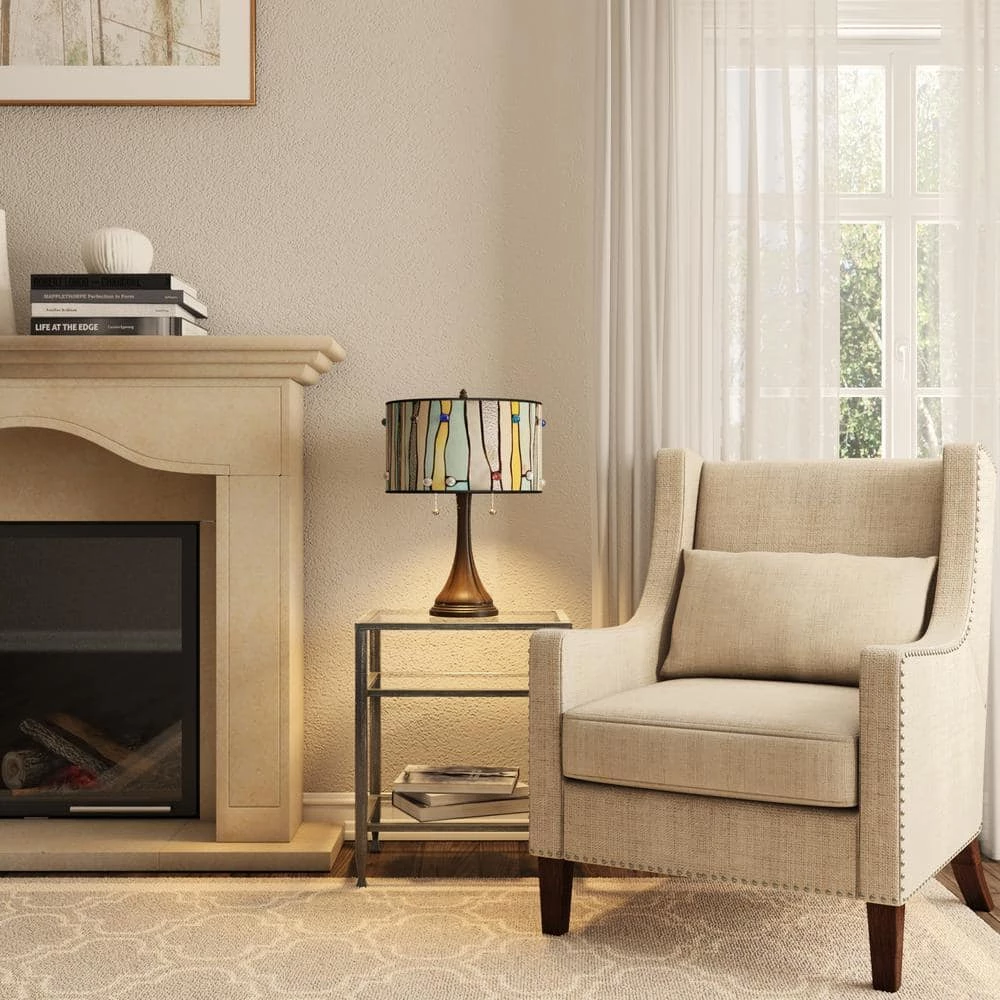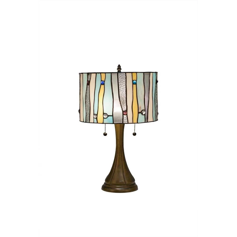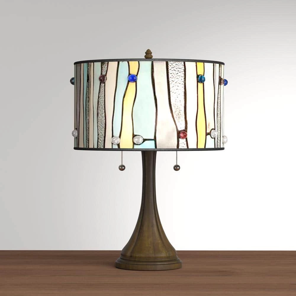 Fancy this modern take on a chic Tiffany-style lamp design. Your decor will love the light blue stained glass interspersed with clear textured glass lampshade. The 22 in. H fits on any accent or end table. This unique barrel-shaped lamp offers a contemporary look and elegance for your home decor.